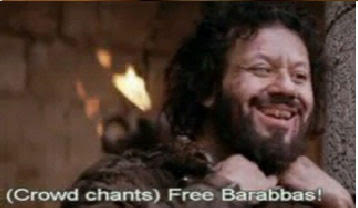 Which of the two do you want me to release to you?” asked the governor. “Barabbas,” they answered. Matthew 27:21